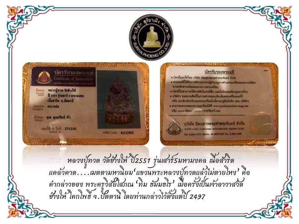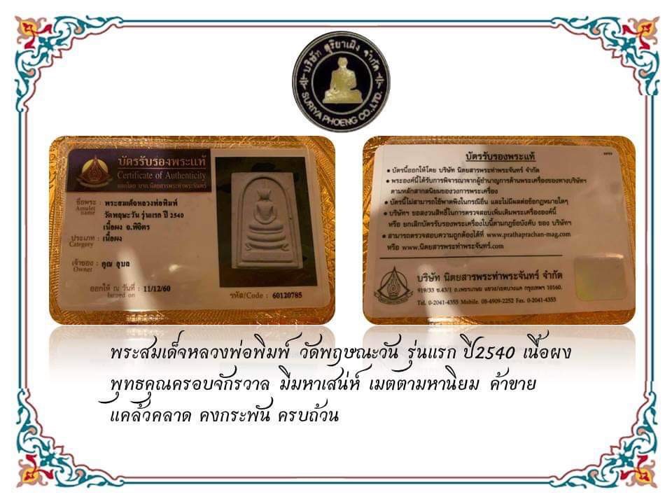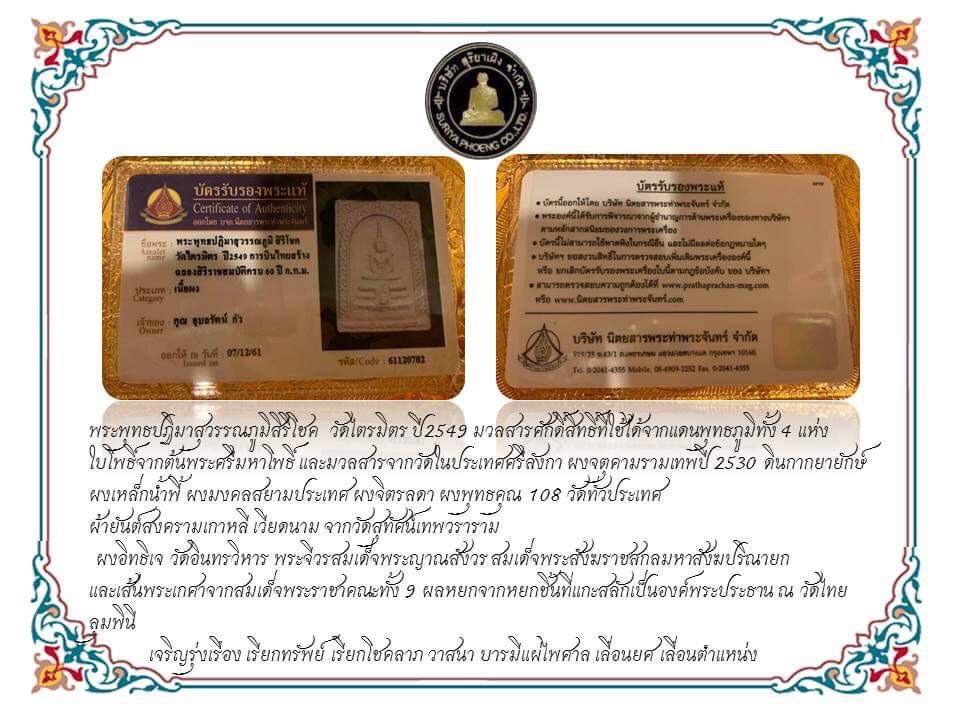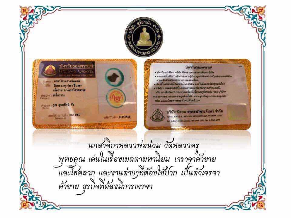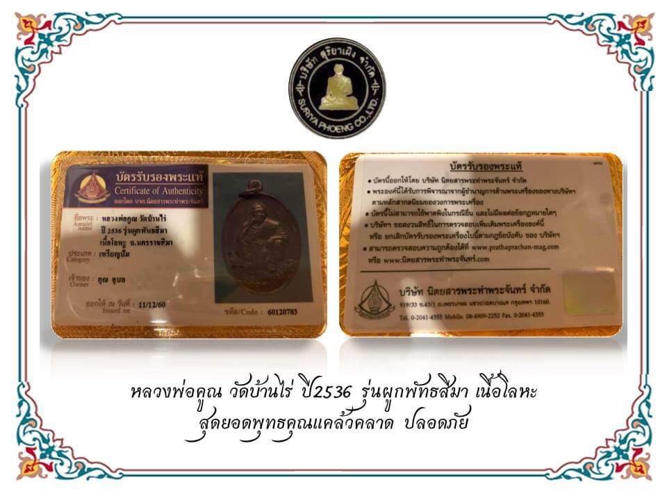 ใบการันตีพระ